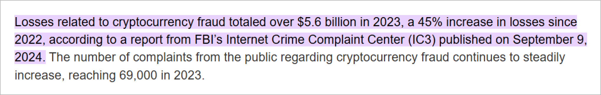 These attacks are highly sophisticated, often carried out by organized criminal syndicates or state-sponsored actors. In 2023 alone, the FBI reported $5.6 billion in stolen cryptocurrency. Remember, your crypto exchange isyour first and last line of defense to protect and safeguard your assets. Focus on taking action, not on self-blame.